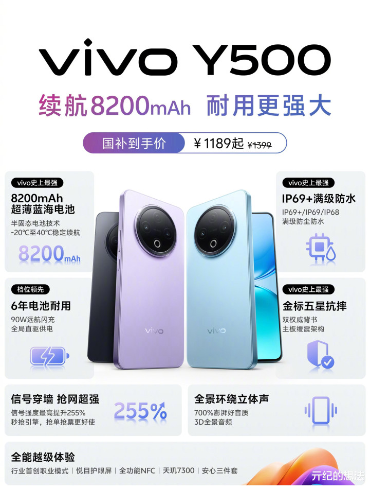 排名第五的是vivo Y500,该机主打8200毫安时电池和防水耐摔机身,还有天玑7300芯片和90W闪充等等,8GB+128GB版售价也是1399元。该机属于荣耀X70的竞品,从两款机型的销量来看,会有更多厂商跟进这样的组合和产品定位。在剩下的4款机型中,vivo Y300i(第12名)、vivo Y50(第15名)和vivo Y37(第27名)属于偏线下市场的中低端机型,而vivo S30(第13名)定位自拍轻旗舰。